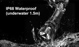 You don’t have to worry, if the flashlight is getting wet or you accidently drop it into water. It’s 100% waterproof up to 60 inches under water.